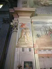 Em 1642 as figuras de Adão e Eva foram cobertas por sobre-pintura de folhas de figo. Esta cena que foi salva do repinte barroco, saiu enegrecida pelo fogo de 1771 que destruiu grande parte da basílica. Somente com o restauro de 1983-1990 foi possível redescobrir o brilhante cromatismo inicial e foram eliminadas as repinturas.