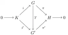 são equivalentes (ou congruentes) se existe um isomorfismo de grupos tornando comutativo o diagrama da Figura 1. Na verdade, é suficiente ter um homomorfismo de grupo; devido à comutatividade assumida do diagrama, a aplicação é forçada a ser um isomorfismo pelo lema dos cinco curto.