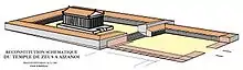 O templo de Zeus, situado sobre a colina, foi o principal santuário da cidade. Achados cerâmicos indicam o povoamento do sítio desde a primeira metade do terceiro milênio a.C.. De acordo com uma leitura recente duma inscrição no arquitrave, a construção do templo começou sob Domiciano (r. 81–96). Inscrições retratam a assistência imperial de Adriano (r. 117–138) relacionada à cobrança de alugueis não pagos bem como o evergetismo de Marco Apuleio Eurícles. Mais tarde, os Tártaros Çavdar esculpiram cenas equestres e de batalha no templo.[5][6] O templo é pseudodipterial, com oito colunas nas extremidades e 15 ao longo dos dois lados (35 m x 53 m).[3][4] Foi danificado em um terremoto de 1970 e desde então tem sido restaurado.[7]