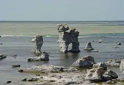 Podem-se admirar as paisagens áridas da ilha, onde diversos sítios apresentam os famosos raukar de Gotland, pilares de formas estranhas e sugestivas, esculpidos pelo mar na rocha calcária. Tem uma longa praia de areia chamada Sudersand.[3]