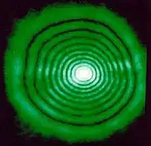 A física pura está preocupada com a obtenção do conhecimento básico e preciso, sem se preocupar com pesquisas que tenham utilidade prática imediata. Almeja a obtenção de conhecimentos para a resolução de problemas de caráter mais geral, embora não tenha um objetivo bem delineado. Busca atender demandas exigidas pela própria comunidade científica, como a necessidade de se propor novas teorias para problemas que são insolúveis para a teoria vigente.[123] Em 1916, Albert Einstein propôs o modelo de emissão estimulada, onde a colisão de um átomo excitado com um fóton de mesma energia provoca a emissão de um fóton idêntico ao primeiro, que se propaga na mesma direção e sincroniza sua onda com a do estimulador, somando sua intensidade e aumentando, dessa forma, a intensidade da luz emitida. Este conceito é a base do funcionamento do laser, que viria a ser inventado apenas em 1960.[124]
