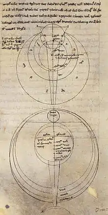Para explicar o movimento planetário, Eudoxo de Cnido, no quarto século a.C., elaborou as primeiras observações quantitativas para montar um modelo matemático dos movimentos planetários. Eudoxo desenvolveu um sistema de esferas concêntricas, sendo que cada esfera carrega um planeta.[26] Este sistema foi se sofisticando ao longo dos séculos, com a crença dos gregos em um sistema geocêntrico.[26] Todas as anomalias observadas, como a regressão aparente dos planetas e até mesmo a precessão do eixo da Terra, descoberta por Hiparco, foi explicada através do aumento da complexidade do sistema de esferas geocêntricas.[27] Ptolomeu, no século II a.C. havia elaborado um sistema esférico dos planetas com mais de 80 esferas e epiciclos e seu trabalho, resumido em uma coleção de 13 livros que ficaram conhecidos como Almagesto, foi utilizado amplamente pelos árabes e europeus até a Alta Idade Média.[27]