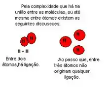 A complexidade que há na união entre moléculas, ou mesmo os átomos, trazem discussões como exemplo o átomo de hidrogênio, no qual dois se unem, porém três átomos de hidrogênio não originam qualquer ligação.