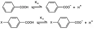 O estudo de como os substituintes afetam a reatividade de uma molécula ou a velocidade de reações é de interesse significativo para os químicos. Os substituintes podem exercer um efeito por meio de interações estéricas e eletrônicas, as últimas incluindo ressonância e efeitos indutivos. A polarizabilidade da molécula também pode ser afetada. A maioria dos efeitos dos substituintes é analisada através de relações lineares de energia livre. O mais comum deles é a o gráfico de Hammett. Essa análise compara o efeito de vários substituintes na ionização do ácido benzoico com seu impacto em diversos sistemas químicos. Os parâmetros das plotagens de Hammett são sigma (σ) e rho (ρ). O valor de σ indica a acidez do ácido benzoico substituído em relação à forma não substituída. Um valor positivo de σ indica que o composto é mais ácido, enquanto um valor negativo indica que a versão substituída é menos ácida. O valor ρ é uma medida da sensibilidade da reação à mudança no substituinte, mas apenas mede os efeitos indutivos. Portanto, foram produzidas duas novas escalas que avaliam a estabilização da carga localizada por ressonância. Um é σ +, que diz respeito a substituintes que estabilizam cargas positivas por ressonância, e o outro é σ−, que é para grupos que estabilizam cargas negativas por ressonância. A análise de Hammett pode ser usada para ajudar a elucidar os possíveis mecanismos de uma reação. Por exemplo, se for previsto que a estrutura do estado de transição tenha um acúmulo de carga negativa em relação à estrutura do estado fundamental, espera-se que os grupos doadores de elétrons aumentem a velocidade da reação.