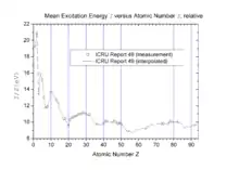 onde Z é o número atômico dos átomos do material. Se esta aproximação é introduzida na fórmula (1) acima, obtém-se uma expressão que é muitas vezes chamadoa de Bethe-Bloch fórmula. Mas desde que nós temos agora tabelas com valores precisos de I como uma função de Z (ver abaixo), podemos usá-las para obter melhores resultados do que a utilização da fórmula (3).