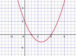 Cada uma dessas duas soluções é chamada de raiz (ou zero) da equação quadrática. Geometricamente, essas raízes representam os valores de em que qualquer parábola, descrita como , cruza o eixo .[3]