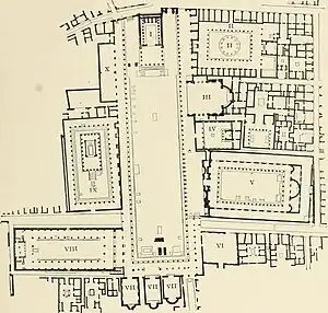 Diferentemente das demais cidades romanas, O fórum principal de Pompeia não estava localizado nas proximidades de seu centro geográfico, porém localizava-se no sentido oeste, dando acesso à Porta Marina.