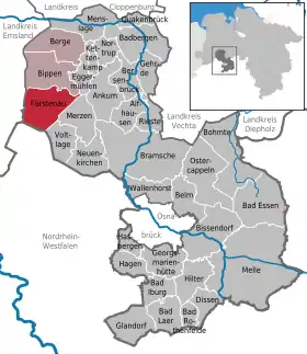 | Localização de Fürstenau no distrito de Osnabrück | |