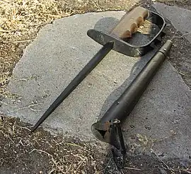 - Bull, Stephen, Encyclopedia of Military Technology and Innovation, Greenwood Publishing, ISBN 1-57356-557-1 (2004), p. 70: During World War I, many German trench or close-combat knives (Nahkampfmesser) were issued by the military, while privately purchased knives were often made to military patterns. Most featured blades of around 150 mm (6 inches), with slab wooden grips and metal scabbards.