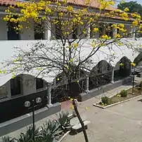 ![]() Vista frontal da Faculdade Mineira de Direito do campus Coração Eucarístico da PUC Minas. | |
