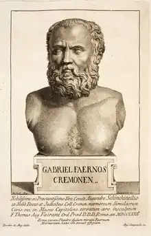 Gabriele Faerno, também conhecido pelo nome latino Faernus Cremonensis, nasceu em Cremona em cerca de 1510 e morreu em Roma em 17 de novembro 1561. Foi um meticuloso erudito e elegante poeta latino mais conhecido por sua coletânea de Fábulas de Esopo em versos latinos, traduzida para o francês por Charles Perrault.[1]