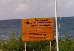 - Em distancia de uma legoa, pouco mais ou menos, a noroeste da ilha, está um alto ilheo de pedra chamado Monxique, que sendo bem alto (nada menos de vinte braças de altura) há por vêzes mar tão bravo naquella Costa, que o cobre todo, saltando-lhe as ondas por cima.