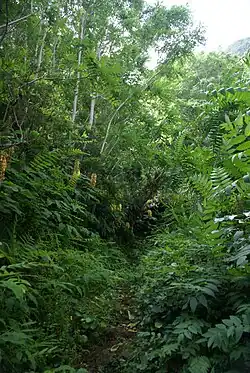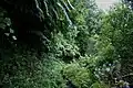 Fajã do Meio, caminhos, exuberância da vegetação das florestas da laurissilva, típica da Macaronésia e características das fajãs da ilha de São Jorge.