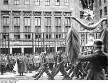 Um dos elementos mais notáveis da Hermann Göring foi o Musikkorps.[68] Essa prestigiosa a banda de música militar mantinha a imagem da unidade no imaginário coletivo alemão, aparecendo com uniformes sotentando os distintivos de colarinho branco e braçadeira de punho de unidade especial (Ärmelstreifen) nos grandes desfiles em Berlim e na troca da guarda do quartel-general da Luftwaffe; frequentemente tocando a marcha regimental Der Jager aus Kurpfalz de Gottfried Rode.[69]