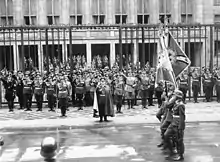 Mais tarde naquele mês de março de 1938, o batalhão paraquedista foi separado do regimento e transformado no I./Fallschirmjäger-Regiment 1, a primeira unidade paraquedista da Wehrmacht.[5] O Regimento General Göring também esteve envolvido na ocupação dos Sudetos em outubro de 1938 e na ocupação do resto da Tchecoslováquia em março de 1939; depois disso, o regimento assumiu funções de guarda nas fábricas de veículos estrategicamente importantes da Skoda.[7] Uma nova reorganização regimental ocorreu, com a unidade tornando-se de fato um regimento de artilharia anti-aérea com unidades de guarda anexadas.