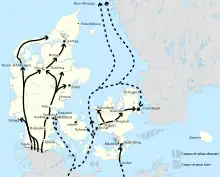 Em abril, um destacamento sob o comando do Hauptmann Waldemar Kluge foi enviado para a Dinamarca.[8] Composto por uma companhia do Wachbataillon, uma Flak-Batterie de canhões 2cm FlaK 30/38/Flakvierling auto-propulsados e uma Kradschützen-Kompanie,[8] participou da tomada do campo de aviação e da estação de rádio de Esbjerg e da ocupação da costa da Jutlândia.Toda a formação foi subordinada à 11ª Brigada de Fuzileiros (motorizada) - 11. Schützen-Brigadede (mot.) - do Oberst Günther Angern, uma brigada independente do Exército que mais tarde formaria o componente de infantaria da 11ª Divisão Panzer.[11] A unidade deveria operar no oeste da Dinamarca ao lado da 170ª Divisão de Infantaria, que avançaria ao longo das duas principais estradas norte-sul em ambos os lados da Península da Jutlândia. A brigada de Angern, com o destacamento de Kluge, se apressaria para o norte entre essas pontas de lança, com o objetivo de chegar ao importante aeroporto de Aalborg, para realizar junção e reforçar um batalhão da 69ª Divisão de Infantaria que deveria ser transportado de avião para tomar o campo durante a madrugada no dia de abertura da ofensiva: 9 de abril de 1940. No caminho, eles também protegeriam a principal cidade e porto de pesca de Esbjerg, esta última tarefa atribuída à força de Kluge.