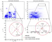 A família Palas é um agrupamento de asteroides tipo B com altas inclinações orbitais na região intermediária do cinturão de asteroides. Foi observado pela primeira vez por Kiyotsugu Hirayama em 1928.