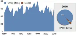Nos Estados Unidos, 36 000 toneladas de F. aztecus foram trazidos para terra em 2010, mais metade das quais no estado do Texas.[5]