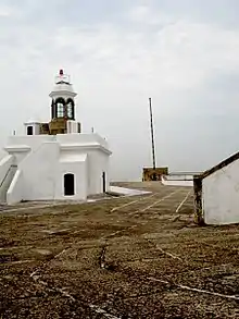Torre quadrangular em alvenaria, pintada de branco, com lanterna hexagonal. A luz atual encontra-se montada num pequeno poste, no cimo da lanterna.[2]