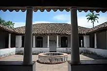 Ela possui um pátio interno alpendrado com colunata, onde se encontra um poço para captação de água, com acesso pelo porão. Durante a reforma de 1969, o antigo piso de madeira foi trocado pelo atual, feito de tijolo de barro. A fachada principal, ao nível da senzala, possui 3 janelas e 2 óculos, para iluminação do depósito. O alpendre em "U", que se estende por toda a fachada principal e parte das laterais, possui 17 pilares de ordem toscana, com fuste liso, base circular e pequenas modificações formais, como variações no tamanho do ábaco. O acesso ao alpendre se faz por uma escada de dois lances posicionada em direção ao pátio externo, entre a casa grande e a capela. A escada ou rampa de acesso direto ao alpendre foi um elemento de grande importância formal no Rio de Janeiro em casas rurais durante o século XVIII. Joaquim Cardozo atribuiu a essa escada um caráter de monumentalidade, devido ao espesso guarda-corpo e ao requinte construtivo.[20]