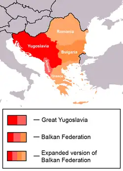 - Este artigo foi inicialmente traduzido, total ou parcialmente, do artigo da Wikipédia em castelhano cujo título é «Federación de Repúblicas Balcánicas».