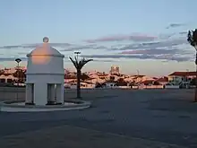![]() Praça do Mercado, onde é normalmente realizada a Feira de Castro. Ao fundo está a vila de Castro Verde, com a Basílica Real a destacar-se do casario. | |