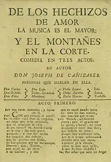 José de Cañizares, escritor espanhol do século XVIII, é autor da comédia "De los hechizos de amor, la musica es el mayor, y el montañès en la Corte" ("Dos feitiços de amor a música é o maior, e o montanhês na Corte"), publicada em 1764,[20] paródia que retratava com humor a vida burguesa e seus costumes.[21]