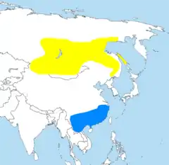 Esta espécie distribui-se pelo norte da Ásia, até ao paralelo 60º, para leste do vale do rio Ob, e chegando à China central e aos Himalaias. A sua área normal de invernada situa-se no sul da China, na Índia e na Indochina. Na Europa esta felosa ocorre apenas como divagante.