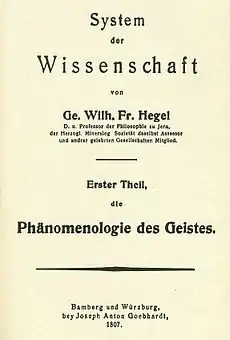 Fenomenologia do Espírito (Phänomenologie des Geistes) (1807) é uma das principais obras filosóficas de Georg Wilhelm Friedrich Hegel.[1] O título pode ser traduzido como Fenomenologia do Espírito ou Fenomenologia da Mente devido ao significado dual da palavra alemã Geist. O título provisório, que também apareceu na edição original, era Ciência da Experiência do Consciente. Na publicação original, era identificado como a Parte I do projectado Sistema da Ciência, do qual A Ciência da Lógica seria a segunda parte. Uma obra menor, intitulada Filosofia do Espírito (ou Filosofia da Mente), aparece na Enciclopédia das Ciências Filosóficas, e reconta de uma maneira mais abreviada e alterada, os principais temas da Fenomenologia original.