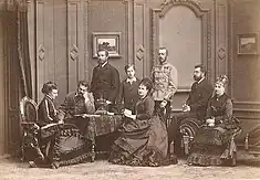 Os Saxe-Coburgo-Koháry em 1875. Da esquerda para a direita: Amália de Saxe-Coburgo-Gota e seu marido, Maximiliano Emanuel da Baviera; Luís Augusto de Saxe-Coburgo-Gota (viúvo da princesa Leopoldina do Brasil), o futuro czar Fernando I da Bulgária, Clotilde de Saxe-Coburgo-Gota e seu marido, José Carlos da Áustria; Filipe e sua esposa, Luísa Maria da Bélgica.