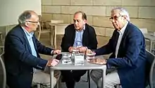 Na esquerda da imagem, Fernando G. Laxe, no meio o ex-candidato Leiceaga, na direita, o ex-Presidente Emilio Pérez Tourinho