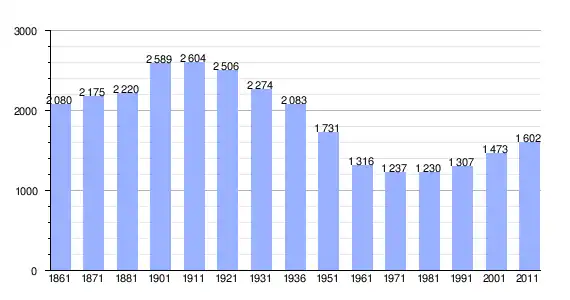 | Variação demográfica do município entre 1861 e 2011[3] |