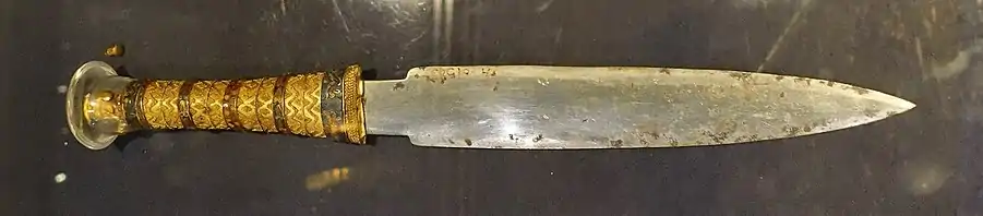 - Datada de cerca de 2500 a.C, uma adaga de ferro de Alaca Höyük.[3]