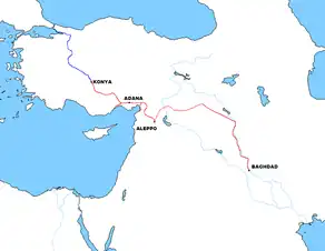 A linha de Mersin, Adana-Yenice existia antes da construção da ferrovia Bagdad e foi utilizada para a tarde na linha Yenice-Adana[4].