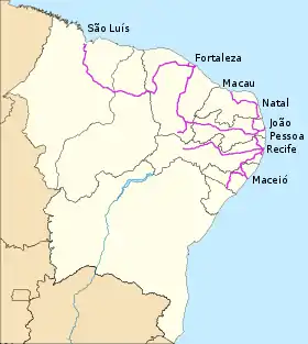| Locais | Alagoas, Pernambuco, Paraíba, Rio Grande do Norte, Ceará, Piauí, Maranhão |