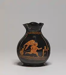 As representações cômicas aconteciam no festival das Leneias. A comédia surge do kômos, uma procissão que passava por várias cidades. Caracterizava-se pelo seu teor engraçado e importunava muitos residentes e viajantes para contar contos cômicos.[26] Posteriormente, durante a primeira metade do século V a.C., a comédia ganha caráter literário, em regiões dóricas como Mégara e Sicília. Ao fim da Guerra Médica, a comédia é oficialmente incluída nos concursos atenienses.[26] O gênero comédia tem na sua origem na ideia de liberdade de expressão e por isso era, e ainda é, utilizada para fazer críticas a indivíduos ou até mesmo à própria sociedade.[27]