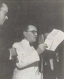 A comissão permanente foi constituída pelos ministros da Educação e das Relações Exteriores e pelos srs. Jorge Guinle, Joaquim Meneses (presidente da Associação Brasileira de Cronistas Cinematográficos), cônsul Vinícius de Morais, ministro Jaime Chermont e professor Gouveia Filho, presidente do Instituto Nacional de Cinema Educativo.[4] Em setembro, o ministro das Relações Exteriores alterou a composição da comissão e indicou, como seus suplentes, o ministro Décio Honorato Moura e o sr. Miguel Franchini Neto; a nova comissão executiva ficou assim composta: ministro Décio Honorato de Moura, ministro Jayme Sloan Chermont, Pedro Gouveia Filho, presidente da Associação de Cronistas Cinematográficos; para representantes do estado de S. Paulo, os srs. Miguel Franchini Neto, Francisco Luís de Almeida Sales, Lucídio Ceravolo e José Gonçalves de Andrade Figueira; para suplentes da representação federal, os srs. Jorge Guinle, Aristides de Castro Casado, Osvaldo Penido e cônsul Vinícius de Morais, além dos seus suplentes.[5]