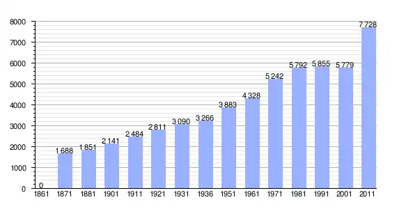 | Variação demográfica do município entre 1861 e 2011[3] |