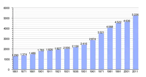 | Variação demográfica do município entre 1861 e 2011[3] |