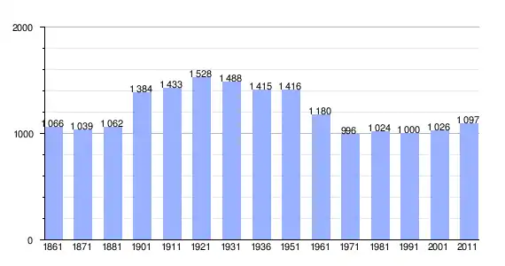 | Variação demográfica do município entre 1861 e 2011[3] |