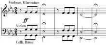 Uma frase, originalmente apresentada como um motivo, pode se tornar uma figura que acompanha outra melodia, tal como no segundo movimento do Quarteto de Cordas de Claude Debussy.