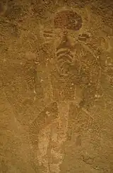 O tipo de silhueta semelhante a cogumelo foi interpretada de várias formas por pesquisadores, como ponta de flecha, remo (segundo o etnógrafo Fabrizio Mori, 1975), um vegetal (provavelmente uma flor, segundo Henri Lhote) ou um símbolo enigmático indefinido.[1] Em um dos painéis, várias figuras antropomórficas mascaradas parecem estar dançando e segurando cogumelos.[1][3][8] Uma publicação pelo Serviço Florestal dos Estados Unidos reconheceu que "o mais antigo petróglifo conhecido representando o uso de cogumelos psicoativos vem dos abrigos rochosos em Tassili n'Ajjer" e que "Postula-se que os cogumelos representados no “xamã do cogumelo” são cogumelos Psilocybe".[9][10] Outros desenhos com características no formato de cogumelos aparecem em petróglifos da região.[1][3]