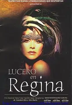 Em 2003, Lucero protagonizou o musical Regina.[41] A história foi baseada no livro Regina: Dos de Octubre No se Olvida de António Velazco Piña, foi escrita por António Calvo e dirigida por Rafael Perrin.[41] Antes de Lucero, várias outras atrizes foram cogitadas para protagonizar a peça, e assim que foi convidada, Lucero aceitou participar por ver aquilo como uma oportunidade.[42] A peça conta a história da dakini Regina (Lucero), que possui poderes sobrenaturais concedidos por Dalai Lama, que controlam as forças da natureza. Com isso, seu tutor (Moisés Suarez) a incentiva a seguir os mesmos passos e ter os mesmos objetivos que Lama teve ao longo de sua vida.