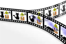 O decaimento do átomo radioativo é um processo quântico, onde o átomo é uma superposição de "ainda não decaído" e "já decaído"; a chance para "já decaído" aumenta com o passar do tempo. Se o átomo radioativo está em superposição, também podemos dizer que o gato também está em superposição: "gato vivo" e "gato morto" ao mesmo tempo.[91]