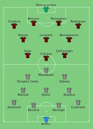 - «Report Statistiche – TIM Cup 2017–2018 – Finale: Juventus-Milan» [Statistical report – TIM Cup 2017–2018 – Final: Juventus v Milan] (PDF). legaseriea.it (em italiano). Lega Serie A. 9 de maio de 2018. Consultado em 9 de maio de 2018