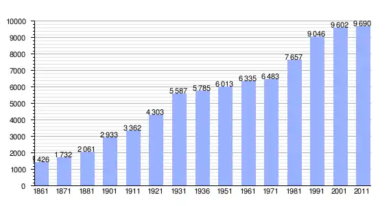 | Variação demográfica do município entre 1861 e 2011[3] |
