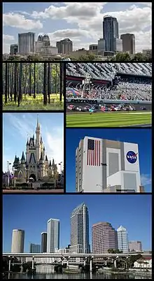 As cidades centrais de ambas as áreas metropolitanas ( Orlando e Tampa ) estão próximas ( 85 mi (137 km) ) e, como resultado, suas duas áreas metropolitanas se misturam na área de Lakeland para formar um centro populacional contíguo maior, geralmente chamado de corredor I-4.[6][7] Esta é uma concentração populacional que se estende desde Tampa Bay, na costa oeste, até Daytona Beach e Cabo Canaveral, na costa leste do estado.