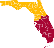 Como acontece com todas as regiões vernáculas, o sul da Flórida não tem fronteiras ou status oficial e é definido de forma diferente por diferentes fontes. Um estudo de 2007 das regiões da Flórida por Ary Lamme e Raymond K. Oldakowski descobriu que os moradores da Flórida pesquisados identificaram o "Sul da Flórida" como compreendendo as seções mais ao sul da península da Flórida , ou seja, de Júpiter, Flórida, ao sul. Essa área inclui a área metropolitana de Miami (geralmente definida como condados de Miami-Dade, Broward e Palm Beach ) , Florida Keys e a região interior conhecida como Glades . Além disso, o sudoeste da Flórida, representando o sul da Costa do Golfo do estado, emergiu como uma região vernácula direcional. Alguns entrevistados do extremo noroeste da área da baía de Tampa ao sul identificaram sua região como sendo no sul da Flórida, em vez de sudoeste ou Flórida Central.[1] Para confundir ainda mais a questão, a Universidade do Sul da Flórida , nomeada em parte devido ao seu status de universidade pública mais meridional do estado na época de sua fundação em 1957, está localizada em Tampa .[2]