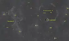 | Flamsteed | Latitude | Longitude | Diâmetro |