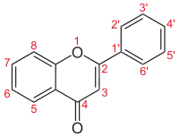 | Compostos relacionados | Cromona (sem o fenil) Flavanona (2,3-diidro-) Flavonol (3-Hidroxiflavona) Isoflavona (3-fenil-1-benzopiran-4-ona) |